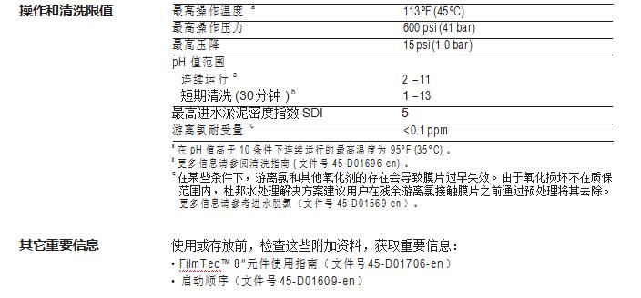 • 34mil 的進水流道,降低了膜元件被污堵的幾率,并明顯提 高了膜元件的清洗效果