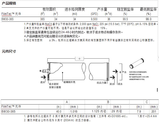 FilmTec™ BW30-365 元件經過了數十年的性能驗證,具有優異 的性能: