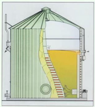 原理:在一個密閉罐體內完成料液的發(fā)酵、沼氣產生的過程。消化器內安裝有攪拌裝置,使發(fā)酵原料和微生物處于完全混合狀態(tài)。投料方式采用恒溫連續(xù)投料或半連續(xù)投料運行。新進入的原料由于攪拌作用很快與發(fā)酵器內的全部發(fā)酵液菌種混合,使發(fā)酵底物濃度始終保持相對較低狀態(tài)。